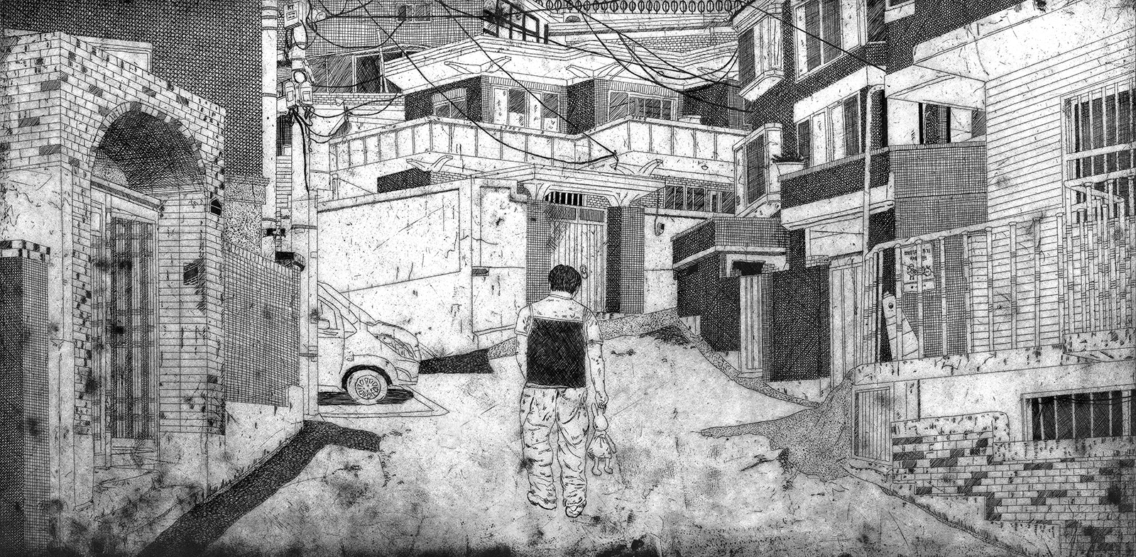 エッチング、ペン、サマーセット紙|600×300㎜|2016