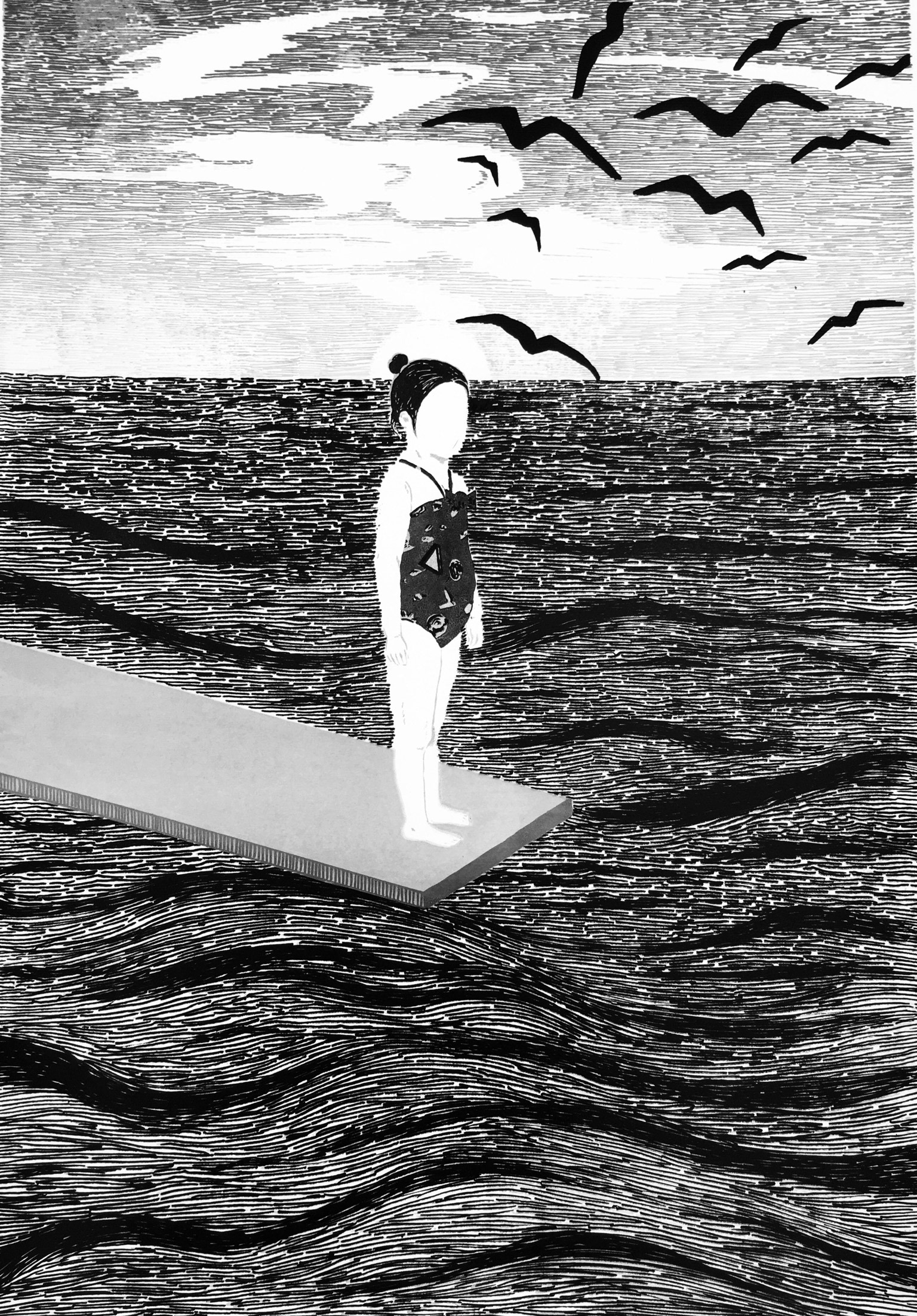 Girl on the diving platform |Silk screen|350×500㎜|2019